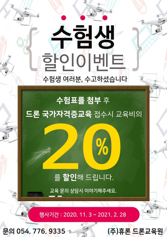 드론 국가자격증 과정 수험생 할인을 진행합니다.